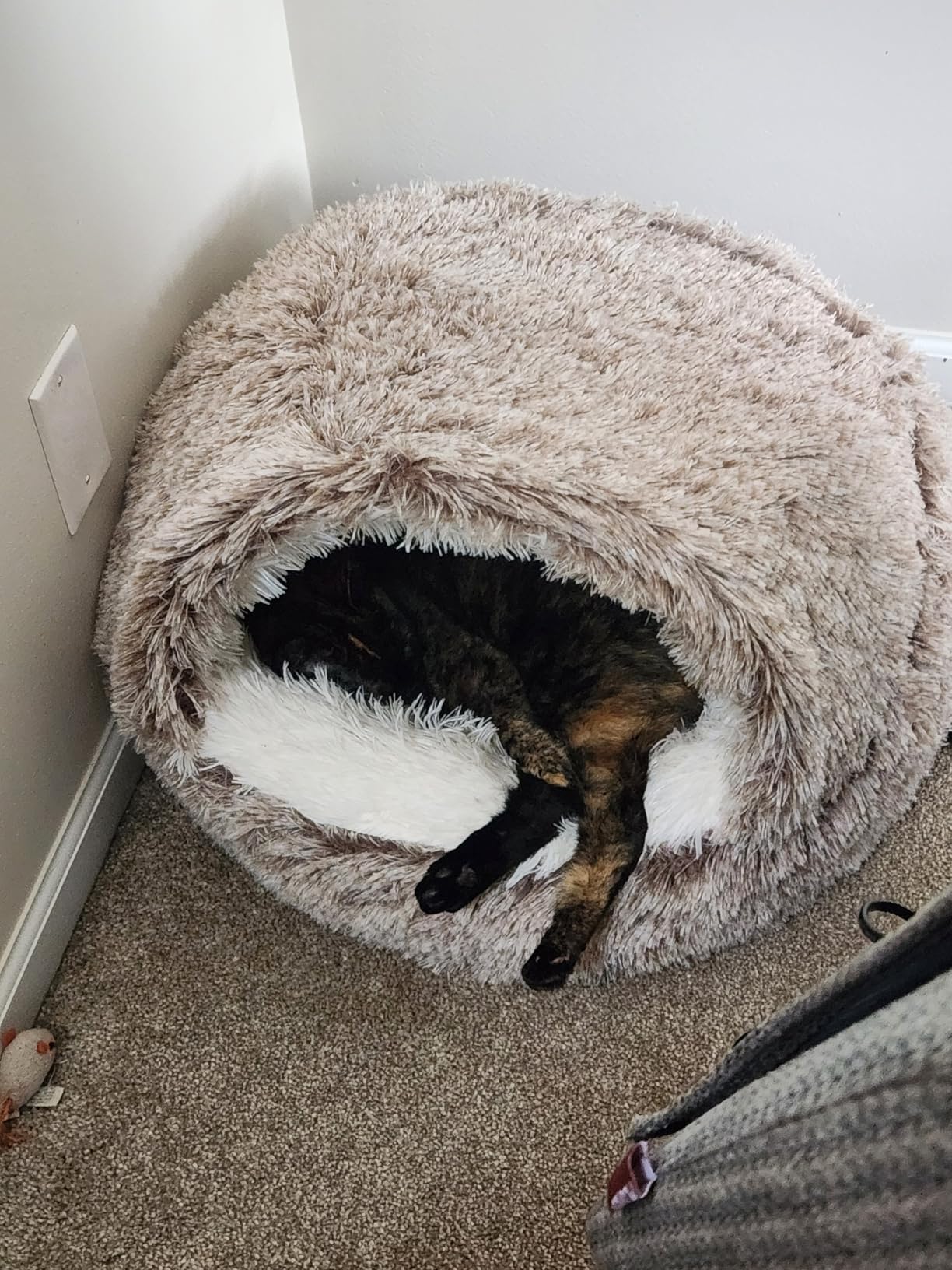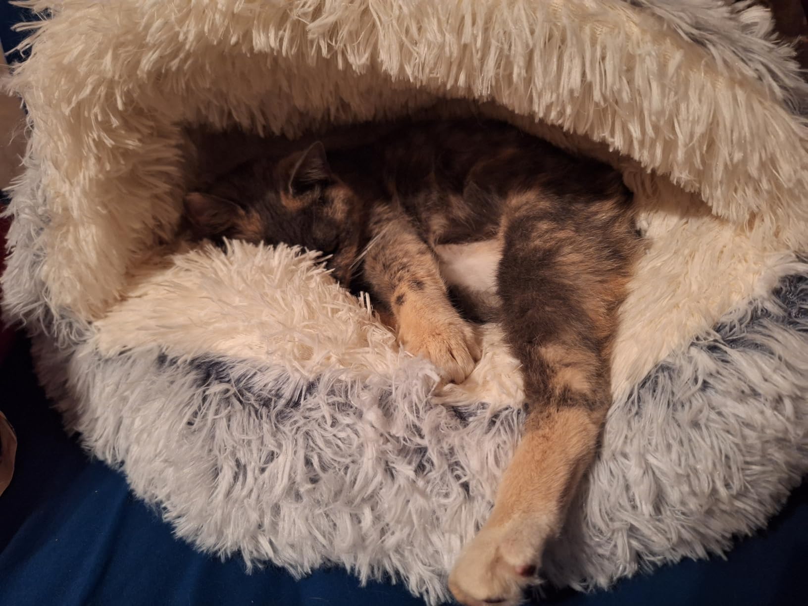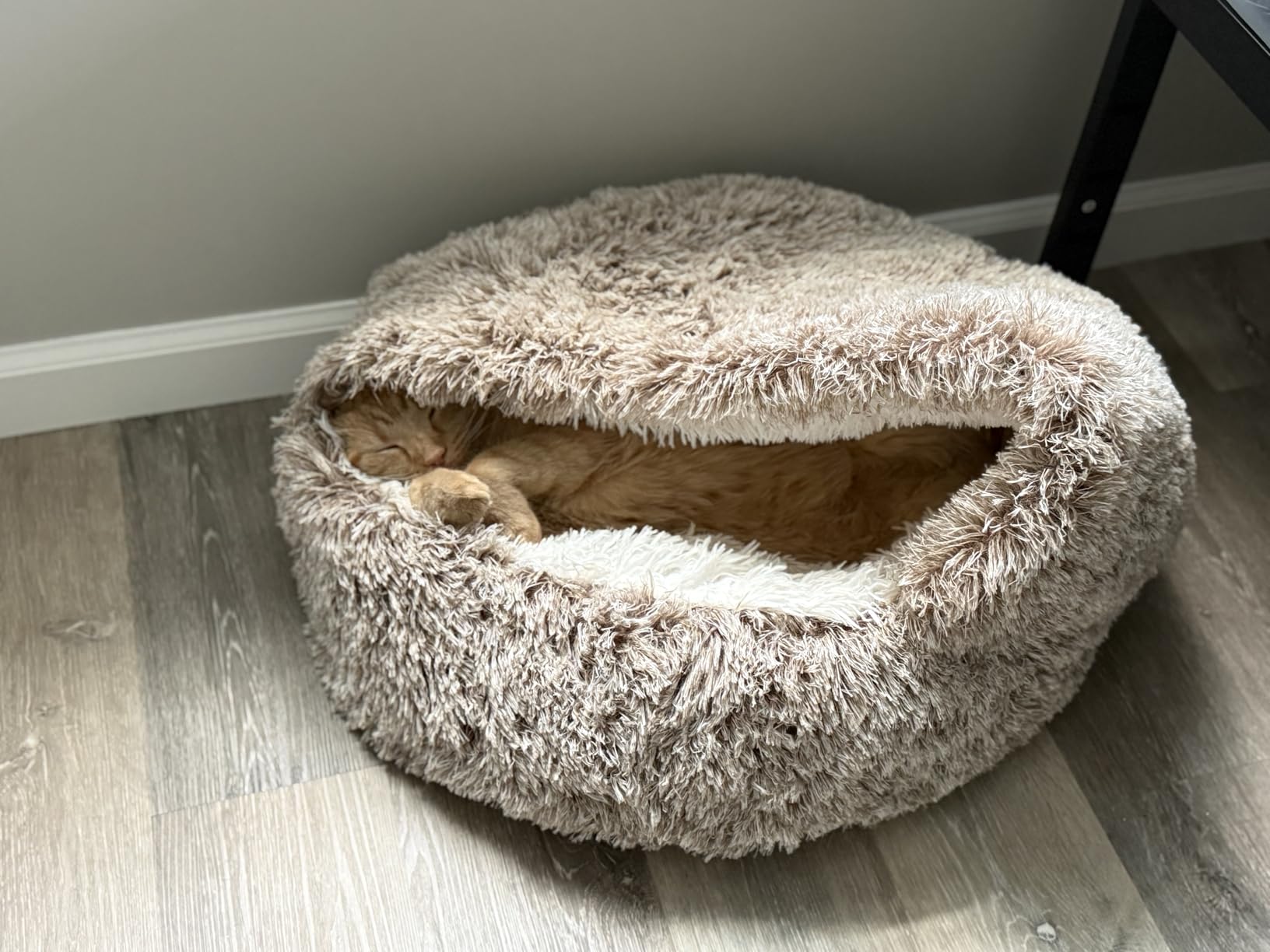 The dome-like design helps reduce surrounding noise and movement, giving your cat a quiet place to sleep without interruptions. Whether placed by the window or near your bed, CalmiCave™ keeps them tucked away in comfort so they can recharge undisturbed.