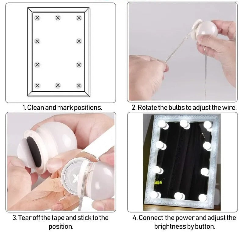 Attaching the lights is simple! We provide easy-to-follow instructions, and no tools are required. Just secure the lights onto your mirror, and you're ready to glow. You can also tuck the wires behind the mirror for a cleaner look.