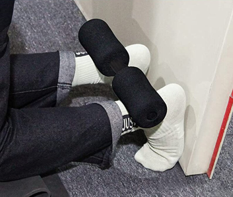 The device works your legs by providing resistance as you bend your legs. It easily attaches to the door frame, allowing for convenient and effective leg-strengthening exercises.