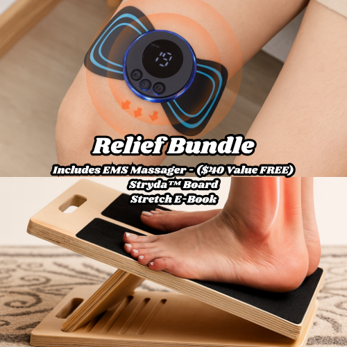 Knee pain is often caused by tight calves, stiff ankles, and weak supporting muscles that put extra pressure on the joint. The Stryda™ Board creates the ideal angle to stretch and strengthen these areas, reducing tension and improving mobility. By training the muscles that stabilize your knees, it helps relieve discomfort now and supports healthier, more resilient joints long term.